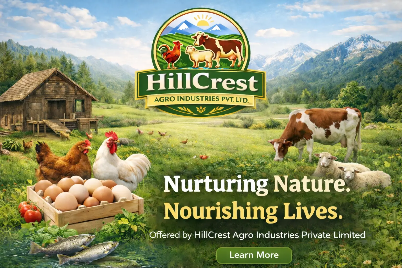 Hillcrest Agro Industries Private Limited is a professionally managed agri-based enterprise committed to ethical, sustainable, and quality-focused farming. Located at Baba Daryadin, Ganderbal, Jammu and Kashmir, our farms benefit from Kashmir’s clean environment, pure water, fertile land, and naturally cool climate—ideal for healthy livestock rearing. We specialize in organically raised desi roosters, hens, and farm-fresh eggs, produced without steroids, growth enhancers, or harmful chemicals. Guided by traditional values and modern bio-security practices, we are also planning to expand into sheep and fish farming, strengthening our vision of integrated and responsible agriculture rooted in the purity of Kashmir.